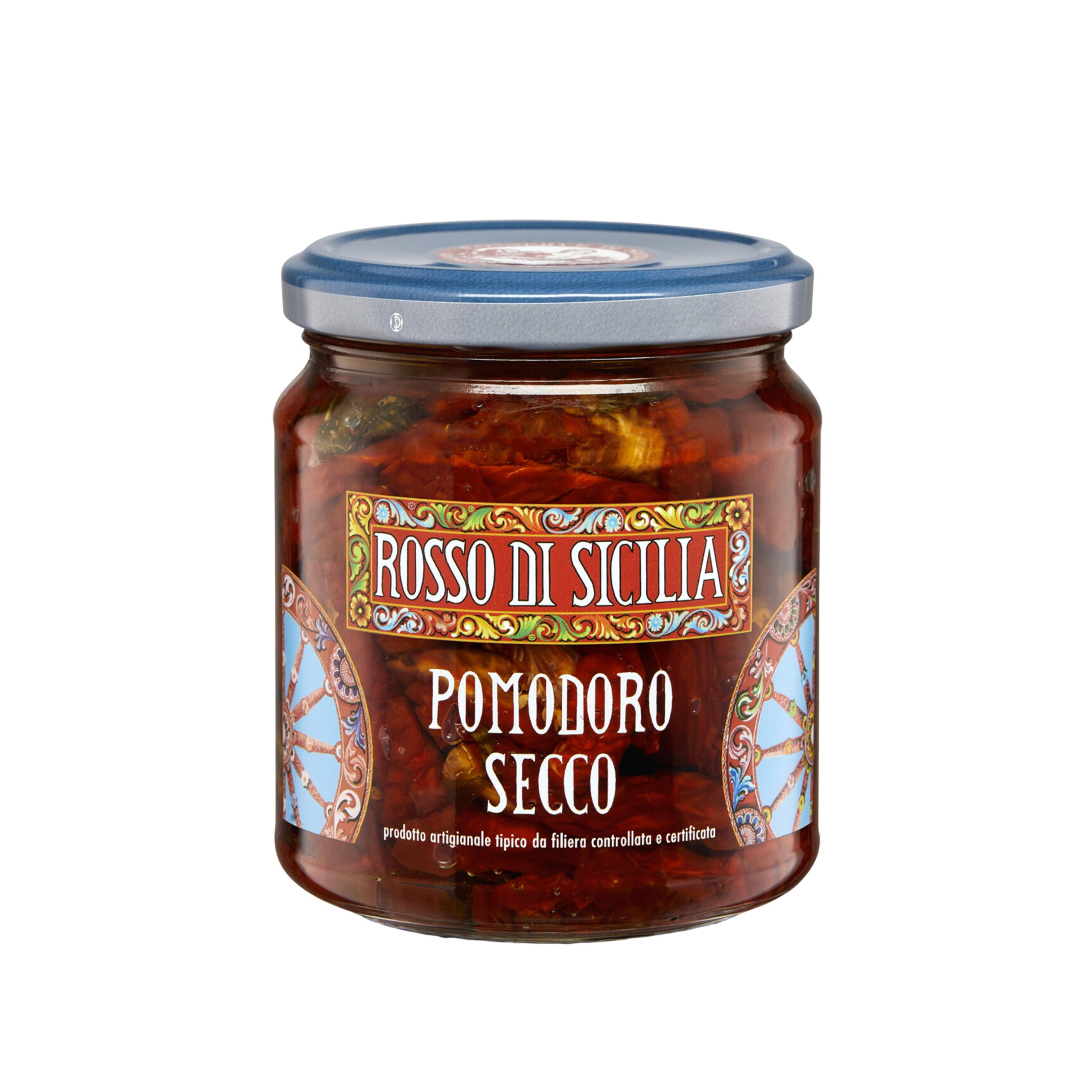 Pomodoro ciliegino 65%, olio di semi di girasole, sale, basilico, aglio. SENZA GLUTINE, SENZA CONSERVANTI