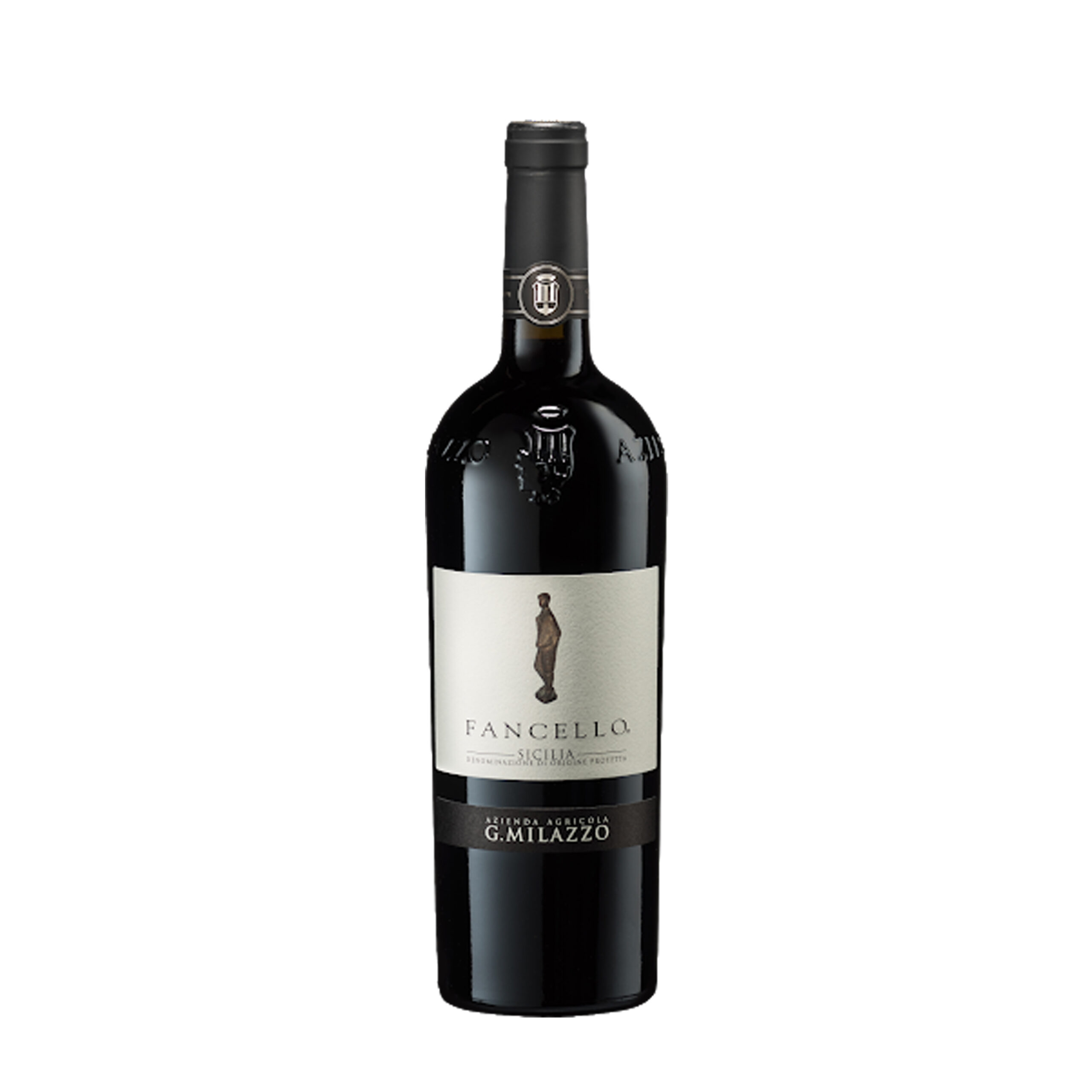 Sull’etichetta è raffigurato un piccolo bronzo di uno scultore siciliano.