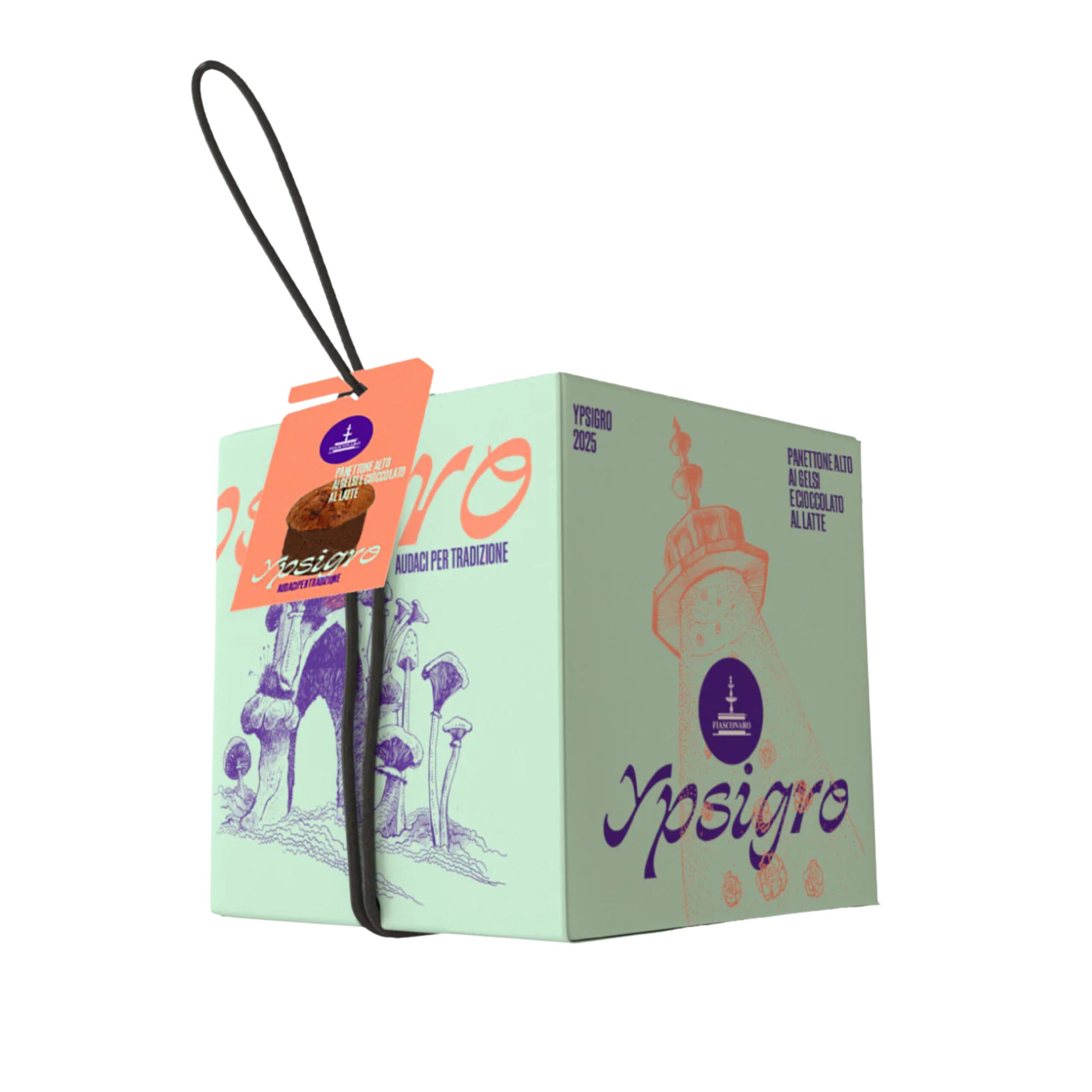 Panettone con freschi canditi d’arancia di Sicilia, arricchito con farina di grano siciliano e pregiata uva sultanina profumata ed aromatizzata con “Malvasia delle Lipari Passito D.O.C.”.